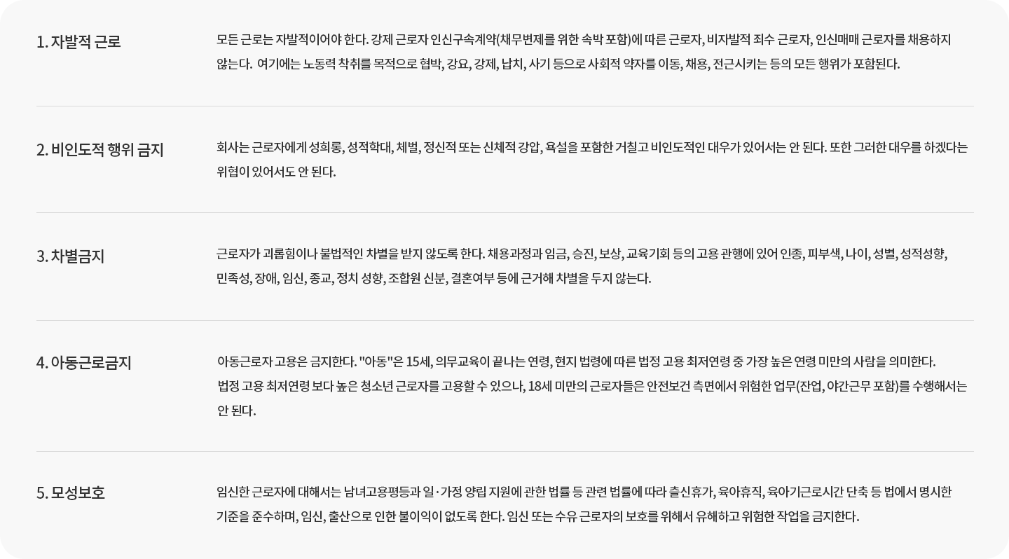모든 이해관계자의 기본적인 권리를 존중합니다.