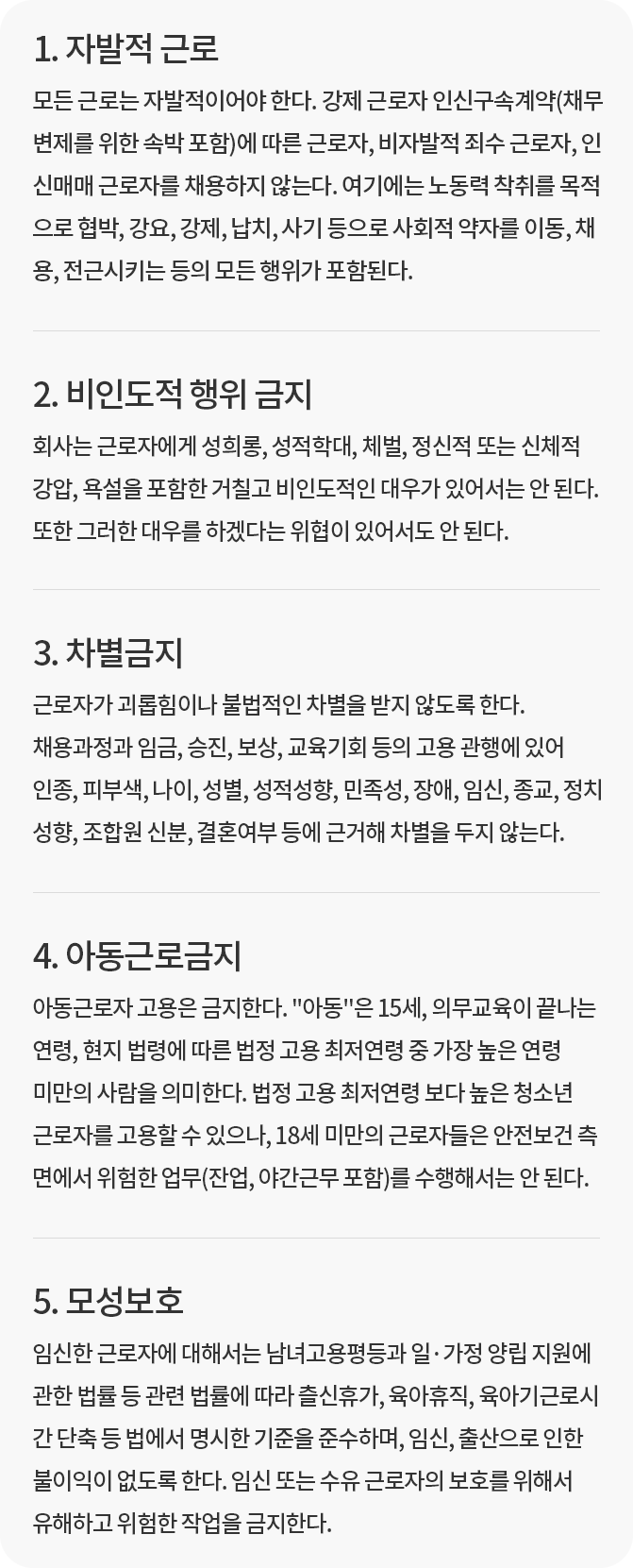 모든 이해관계자의 기본적인 권리를 존중합니다.